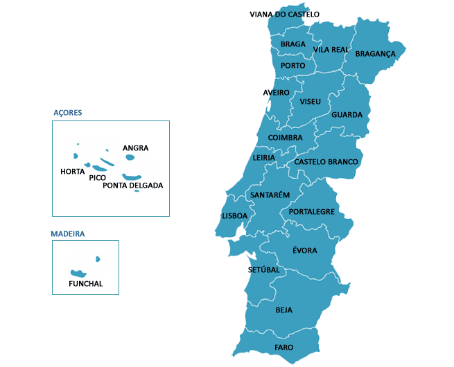 LisboaFunchalFaroBejaSetúbalÉvoraPortalegreSantarémLeiriaCastelo BrancoPicoPonta DelgadaAngraHortaCoimbraGuardaViseuAveiroPortoViana do CasteloBragaVila RealBragança